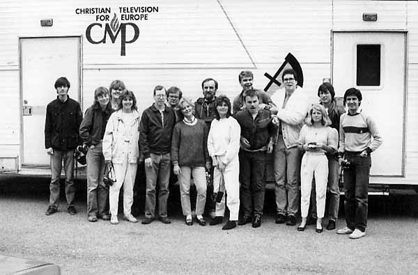 Någonstans i Tyskland framför Huntley Streets tevebuss, en amerikans husbil med kontrollrum. Vem är vem? (Nej. Jag är inte med på bilden. Det var jag som tog bilden.) Tillbaka till Stanleys hemsida!